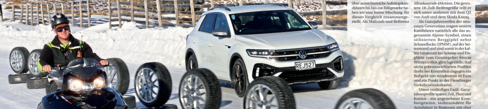 Auto Bild SportsCars published their second all-season tyre test in October, evaluating ten tyres in the 215/50 R 18 size. The test included products ranging from established premium manufacturers such as Continental, Pirelli, and Goodyear through to budget offerings from Linglong and Fortuna. All testing was conducted using a VW T-Roc R equipped with a 300 PS turbocharged engine and 4Motion all-wheel drive.