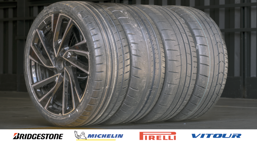 These four tyres might be the fastest track-focused, street-legal tyres you can buy in both Europe and North America right now. The Pirelli P Zero Trofeo RS, the Michelin Pilot Sport Cup 2 R, the Bridgestone Potenza Race, and the Vitour Tempesta P1 Plus - all tested on a VW Golf GTI Clubsport in 235/35 R19.